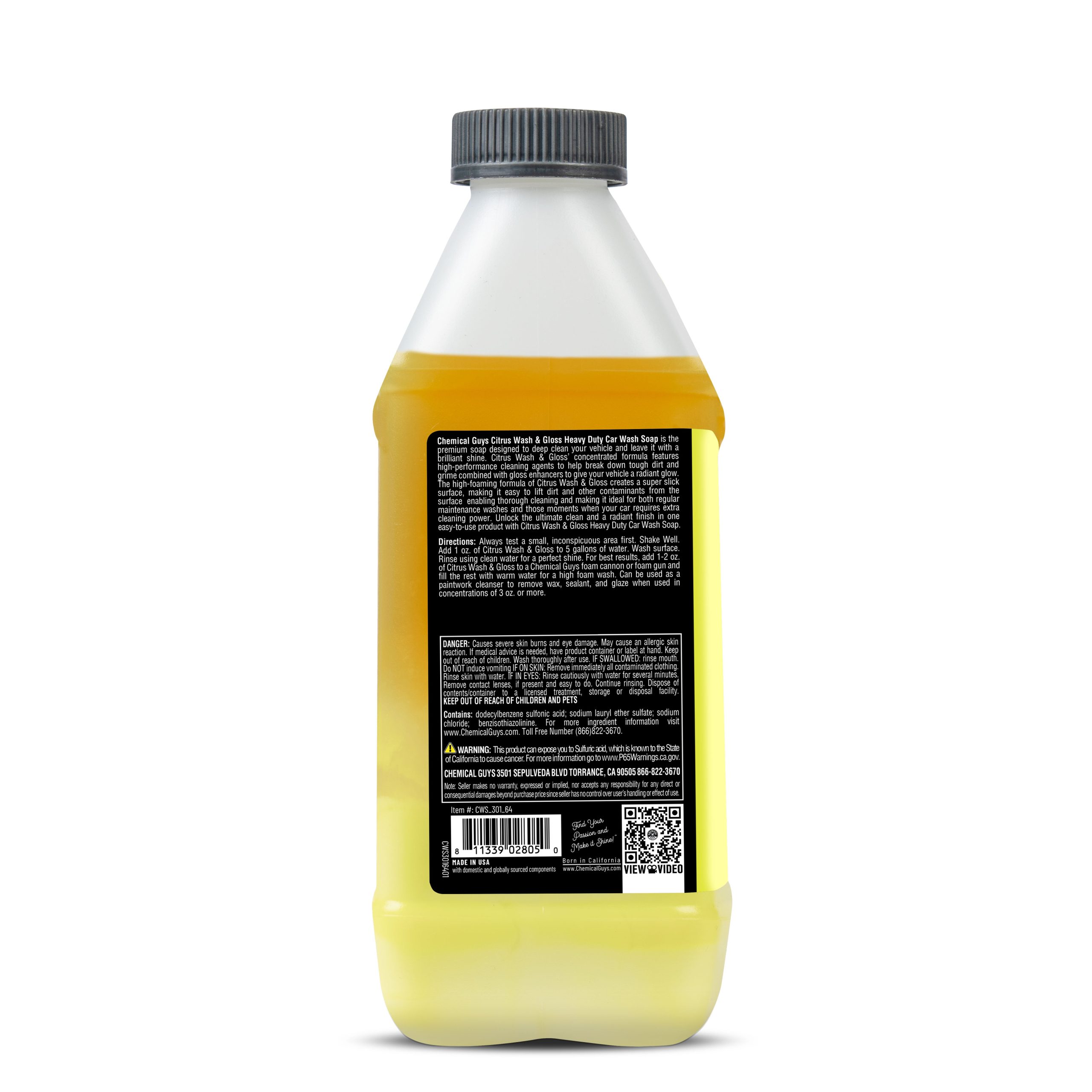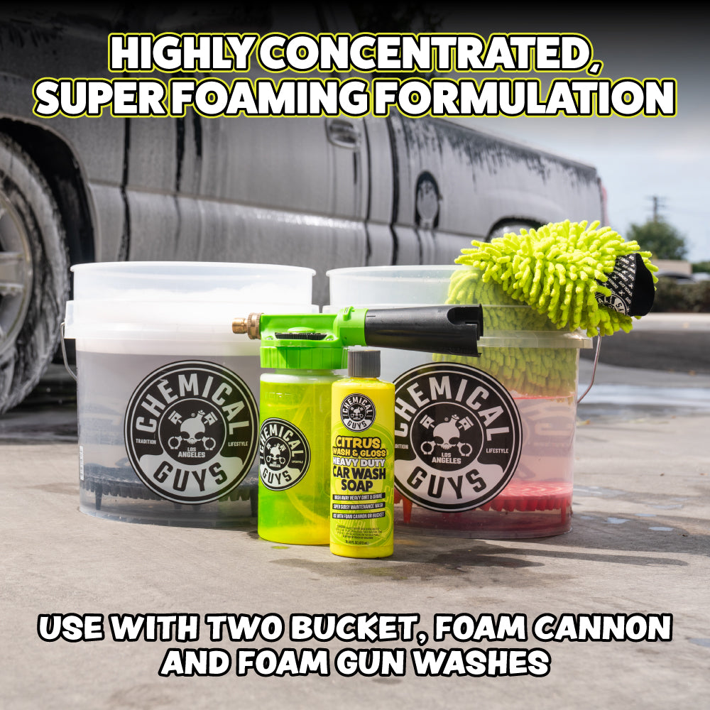 Citrus Wash & Gloss is a powerful hyper-concentrated car shampoo and gloss enhancer formulated to bring out a vibrant shine on all paint colors. Make any vehicle look just waxed and detailed!
