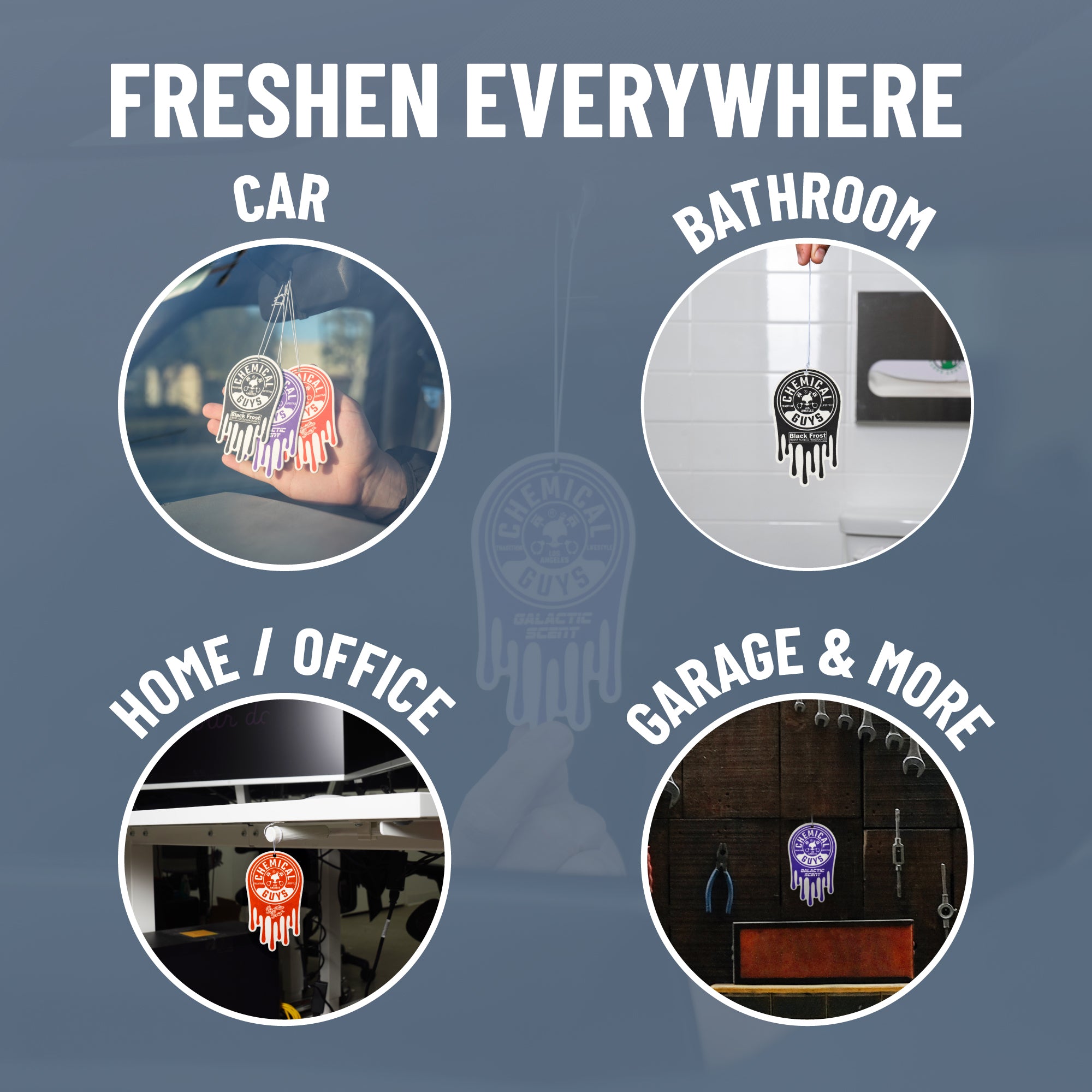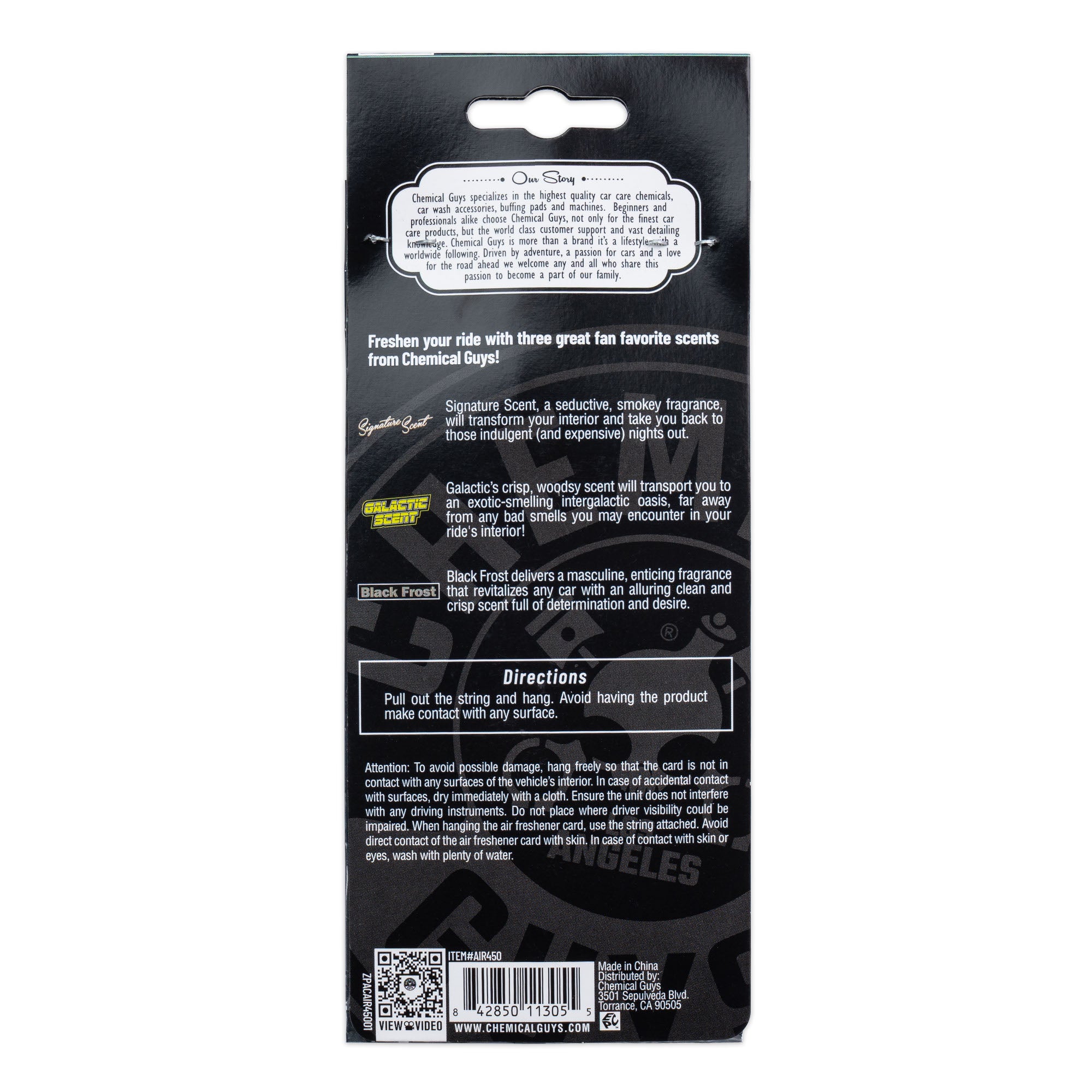 Choose your own scent story with this variety pack of three premium hanging air fresheners. Signature Scent has a tantalizingly warm. vanilla-based aroma. Galactic combines notes of wood. berries. and musk. while Black Frost’s cologne-inspired scent invigorates the senses.??