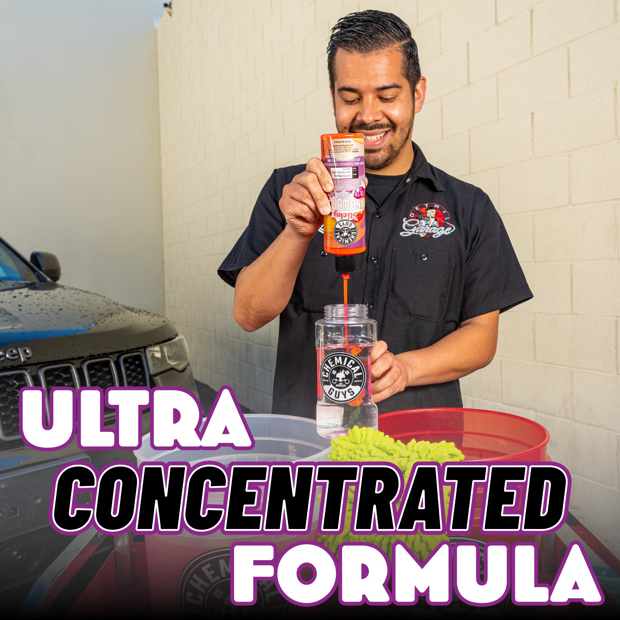 Sticky Snowball car wash soap creates the densest foam. It produces amazingly thick suds that maximize surface contact time to grab and suspend grime and dirt on your vehicle.